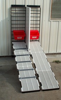 Picture shows 2 complete Club Lamb Ramp Feeders with optional plastic divider panel.
